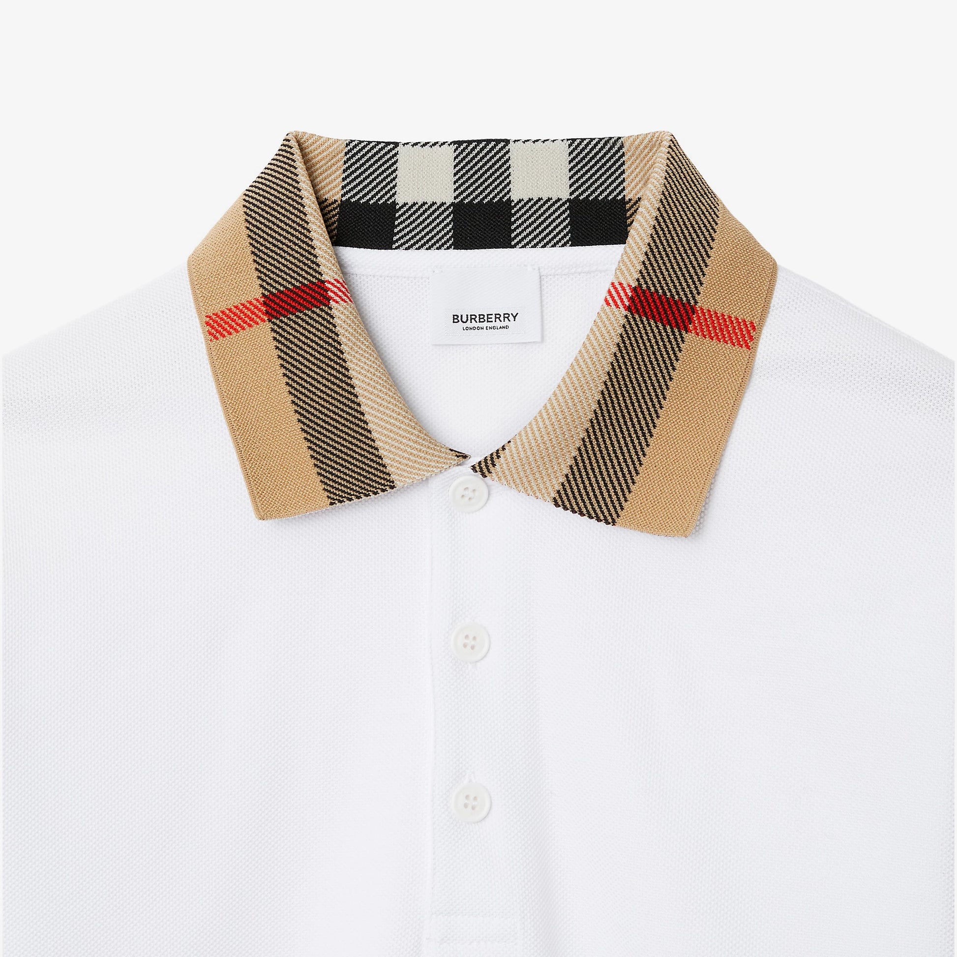 Stay stylish and comfortable with the Burberry Cotton Polo Shirt. Made with soft cotton, this shirt features a classic collar adorned with the iconic Archivio Check pattern. The front button closure and sleek monochrome design make it perfect for any occasion. Grab one for a regular fit now!